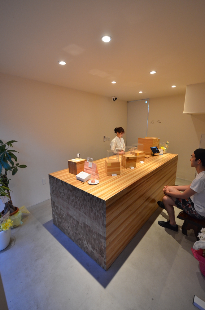 店主からは和菓子の店舗であること、本物の素材を用いたいとのこと、可能な限りローコストで、というのが要望だった。
