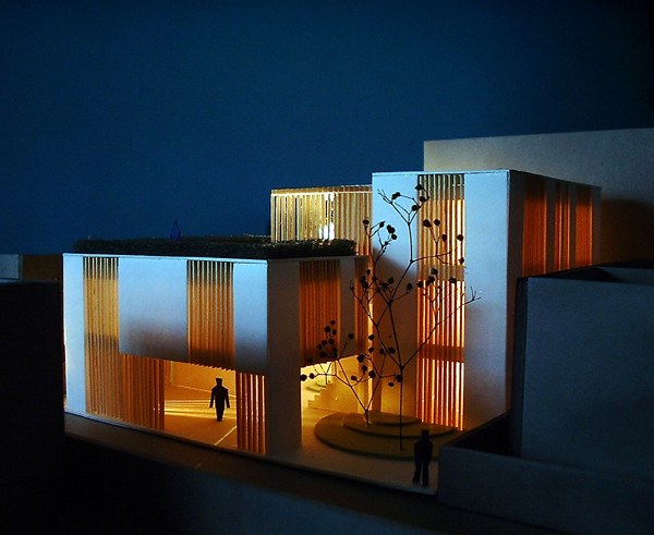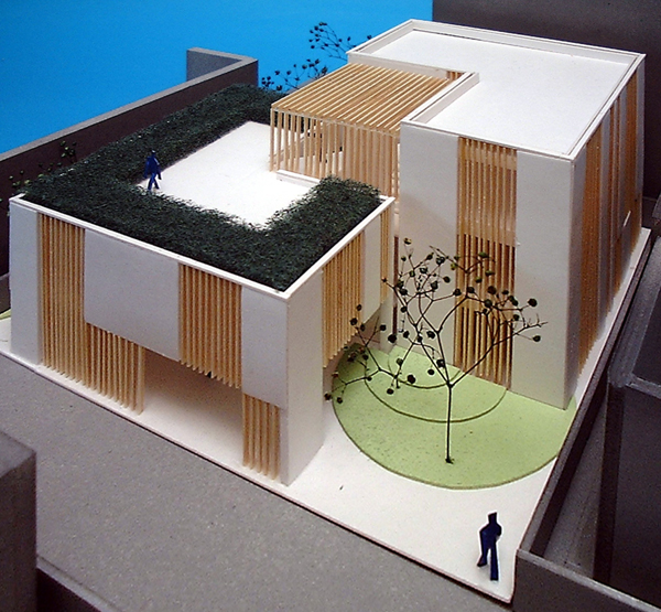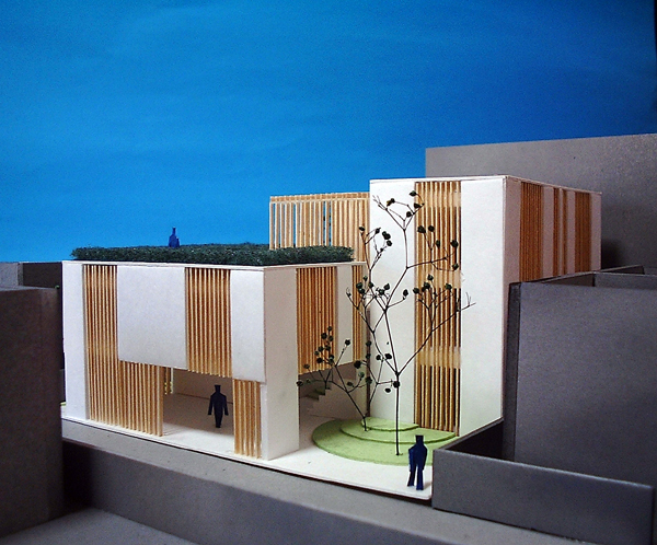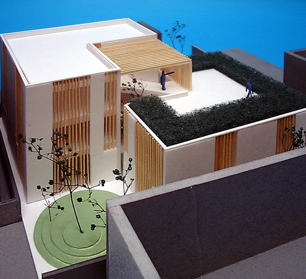 約30m2閑静な住宅街にある立地です。 ワンルーム3ユニットをワンフロアとした棟を2棟、中央の共用階段室を介してつなぎ、隣人の気配を感じるようにしました。 これにより各戸が角部屋となりワンルームといえども快適な生活空間になる構成です。