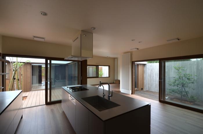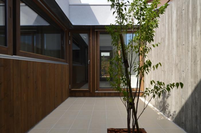 またその木製サッシハイトと合わせた高さで中庭の囲まれ