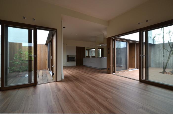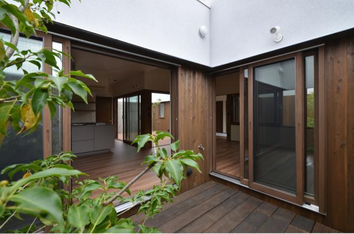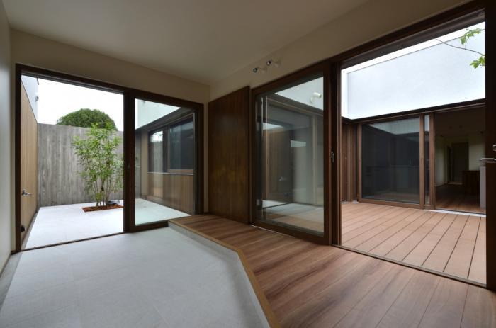 平屋ユニットと中庭の境界面には中庭の上記効用を季節