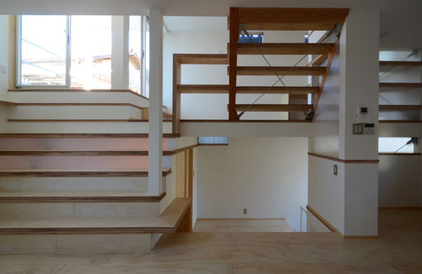 に空間をらせん状に積み重ね、上下の動線である階段