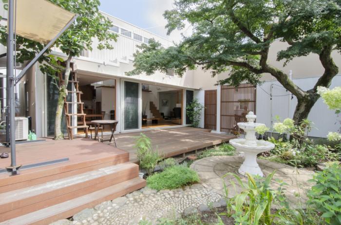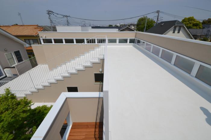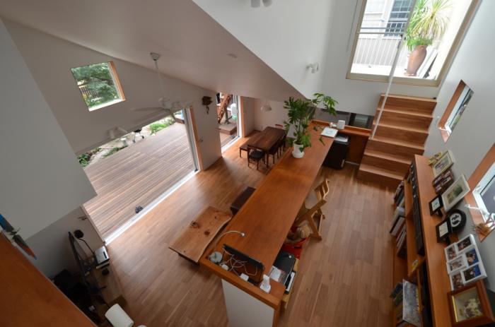 れに続くデッキや屋上テラス、それらに加えて父親の