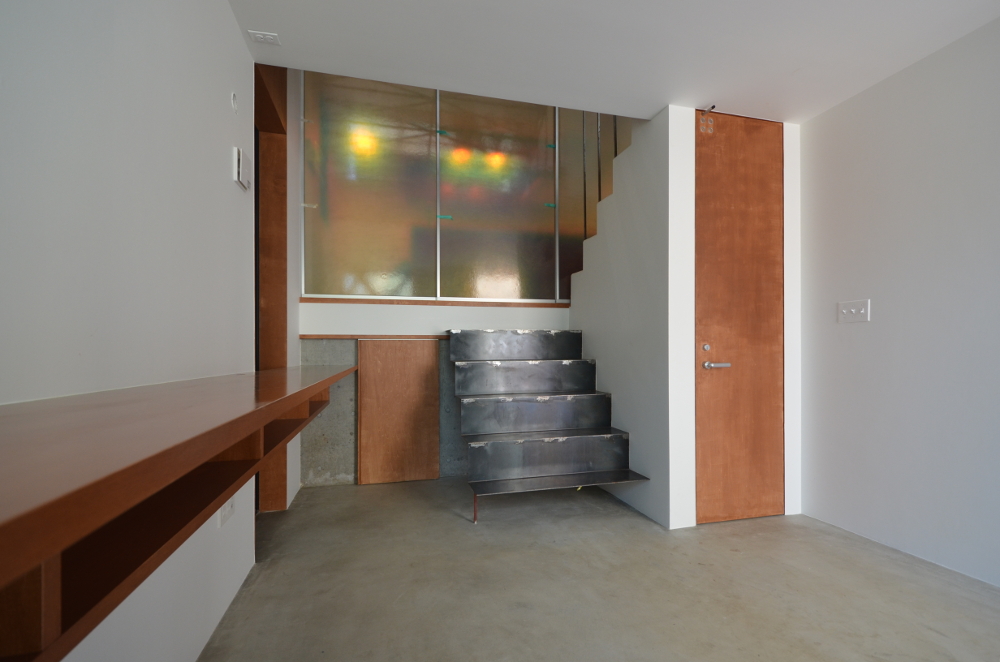 敷地面積が30㎡強で10坪に満たないいわゆる狭小地であり道路側以外は隣家も境界ぎりぎりで建っているため、道路側からのみが採光・通風のよりどころとなった。