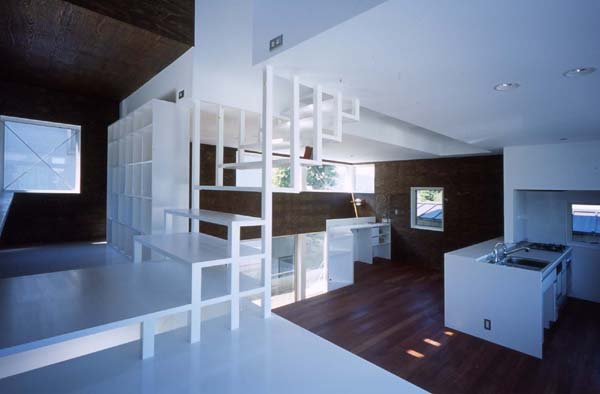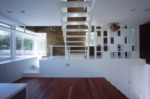 周到な箱の配置とレベル差をつなぐ特徴ある階段により