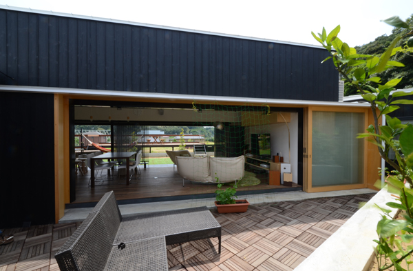 中央のメインのLDK棟の南北は建具によって大きく開